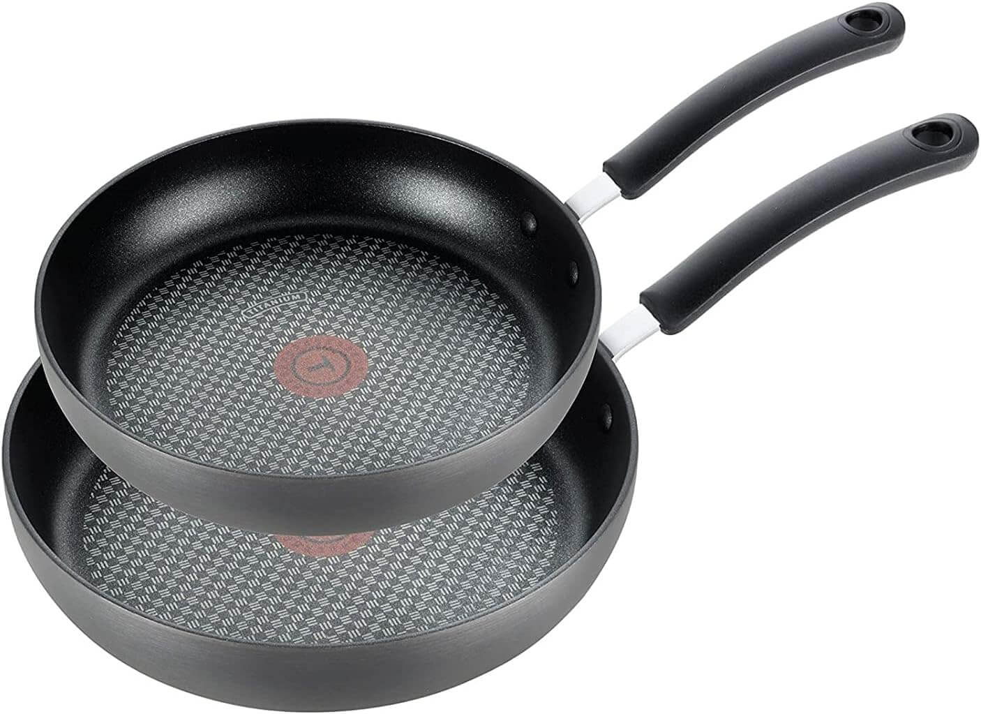 T-fal 2-piece hard-anodized set delivers durable Nonstick Frying Pans performance, oven-safe to 400°F, dishwasher-friendly, and easy cooking.